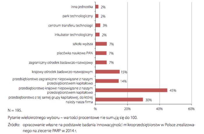 Innowacyjność opiera się w dużej mierze na współpracy z innymi podmiotami. To współpraca umożliwia przedsiębiorstwom dostęp do wiedzy i technologii. Daje efekt synergii, zmniejsza koszty własne firmy, poszerza know-how. Ma kluczowe znaczenie w pozyskiwaniu informacji ważnych dla działalności innowacyjnej. Można je otrzymać od dostawców, klientów czy od firm konsultingowych, mają swe źródła instytucjonalne, tzn. szkoły wyższe, instytuty badawcze. W latach 2010-12 średnio w 28 krajach UE współpracowało z innymi podmiotami 31,3% przedsiębiorstw innowacyjnych. W tej kategorii polskie firmy znalazły się na tym samym poziomie. Badanie PARP dotyczące mikrofirm pokazuje, że z przedsiębiorstwami krajowymi współpracuje 42% firm, z przedsiębiorstwem z tej samej grupy kapitałowej – 23%. Współpraca z sektorem nauki jest stosunkowo rzadka – najczęściej mikrofirmy współpracują z krajowymi ośrodkami B+R (4%). Natomiast jeśli chodzi o plany współpracy w przyszłości, to przedsiębiorcy częściej niż obecnie chcą podjąć współpracę ze szkołami wyższymi (współpracuje 7%, planuje 12%) i inkubatorami technologicznymi (współpracuje 2%, planuje 8%). Może to świadczyć o tym, że widzą zależność rozwoju swojej firmy od jakości posiadanego kapitału ludzkiego. Część firm dotarła do granicy swoich możliwości (np. dalsze obniżanie kosztów wręcz pogorszy sytuację firmy) i wie, że bez dobrych pracowników nie będą się rozwijać. – Jeśli taka świadomość zaczyna się też przedostawać do mikrofirm, na co może wskazywać chęć zwiększonej współpracy ze szkołami wyższymi i inkubatorami, to stoimy przed szansą na rzeczywisty rozwój – komentuje Bożena Lublińska-Kasprzak.