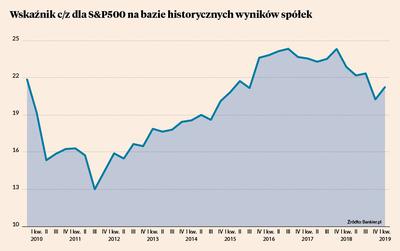 Nawet lepsze od prognoz wyniki amerykańskich spółek nie zmienią faktu, że na Wall Street jest drogo. S&P500i Nasdaq notowane są tuż poniżej historycznych szczytów ustanowionych we wrześniu 2018 r. Pierwszy wyceniany jest na niemal 17-krotność oczekiwanych zysków spółek za najbliższe 12 miesięcy. To wciąż więcej od długoterminowej średniej, choć mnożniki bazują na założeniu, że zyski amerykańskich korporacji w następnych kwartałach pójdą w górę. Natomiast wskaźnik cena do zysku bazujący na historycznych wynikach za ostatnie cztery kwartały w przypadku indeksu S&P500 sięga 22. Oznacza to, że inwestorzy skłonni są płacić aż 22 USD za każdego dolara zaraportowanego zysku netto. Rentowność takiej inwestycji wynosi zaledwie 4,5 proc. i raczej nie pokrywa premii za ryzyko trzymania akcji. Amerykański rynek pozostaje więc bardzo drogi i nawet nieco lepsze od oczekiwań wyniki spółek raczej tego nie zmienią.