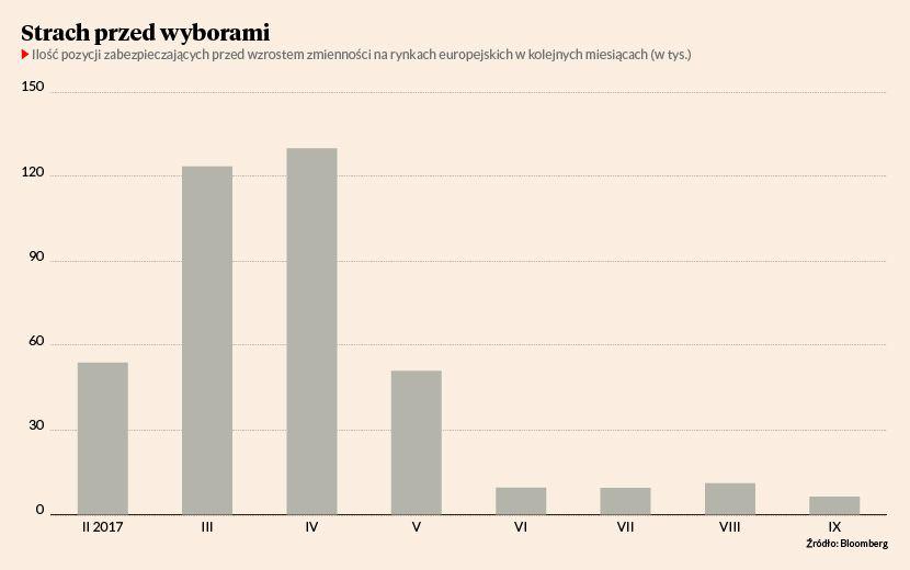 Struktura zapadalności wykupionych przez inwestorów zabezpieczeń przed giełdową korektą wskazuje, że ich obawy są skoncentrowane wokół dat wyborów w Holandii i Francji. Jednak zdaniem ekspertów, inwestorzy, skupiając się na wydarzeniach politycznych, popełniają poważny błąd, ponieważ umykają im jednocześnie znacznie bardziej poważne czynniki ryzyka. To groźba załamania rynków obligacji, dalsze umocnienie dolara, niespełnienie przez Donalda Trumpa rynkowych oczekiwań, załamanie wzrostu w Chinach oraz szybsze od oczekiwań zaostrzenie polityki Fedu, oceniają specjaliści, z którymi rozmawiała agencja Bloomberg.