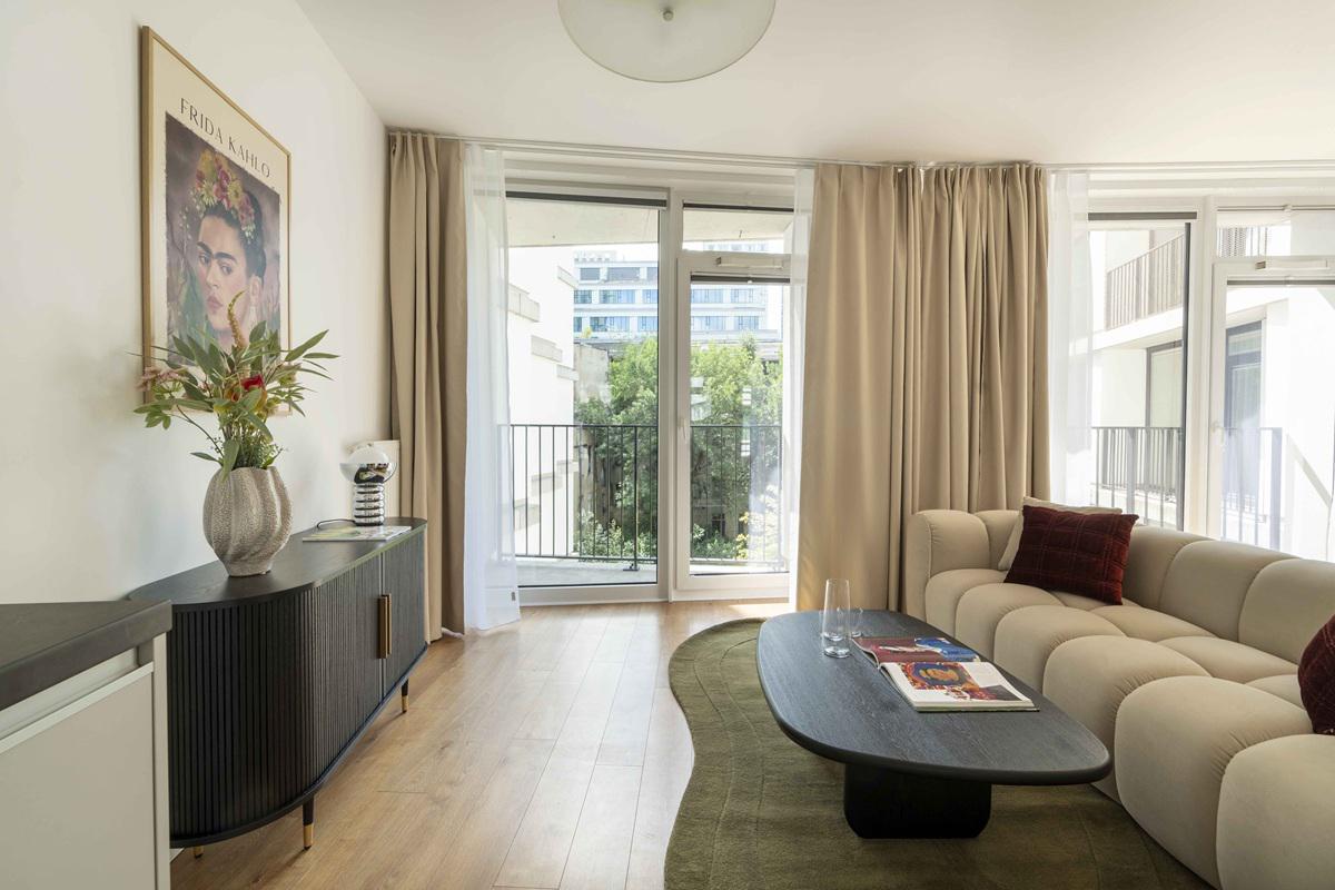 Mieszkania są w pełni wykończone i nie wymagają dodatkowych nakładów finansowych – można w nich od razu zamieszkać lub je wynająć. Każde mieszkanie ma w pełni wyposażoną kuchnię i łazienkę, a panoramiczne okna doświetlają przestrzeń naturalnym światłem i współgrają z nowoczesnym wystrojem wnętrza.