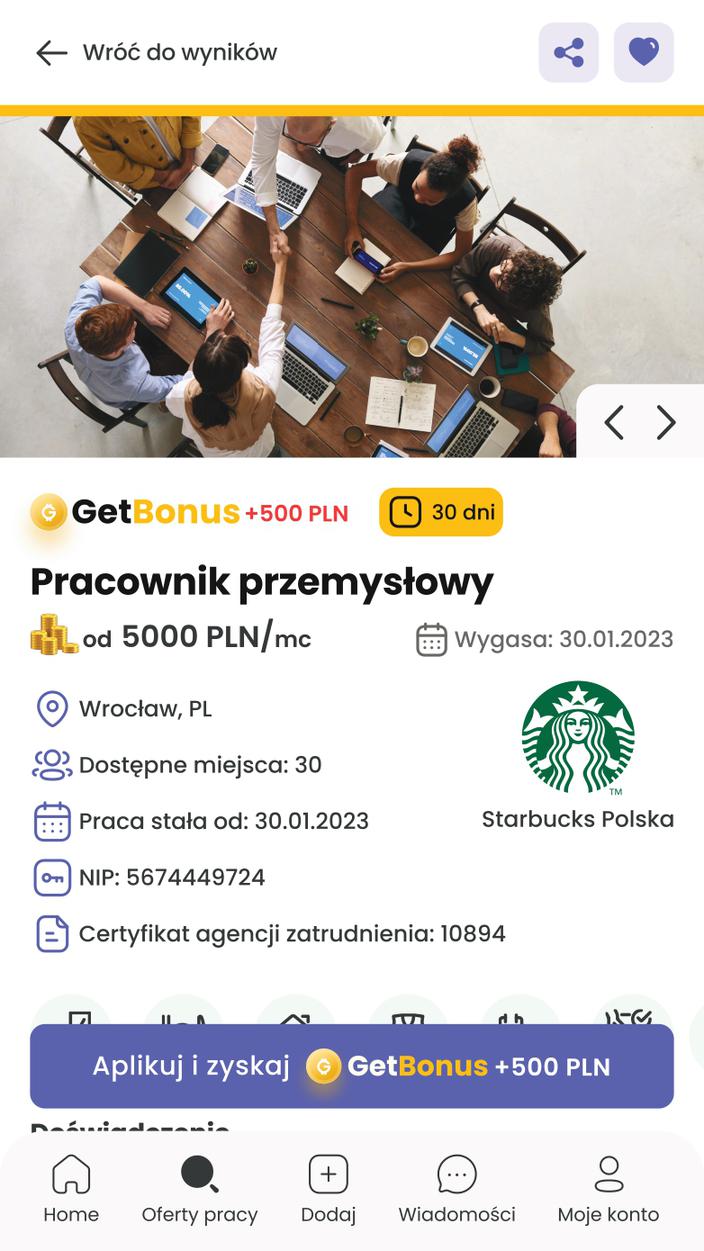Ważnym elementem platformy jest tzw. GetBonus, który można dodać do ogłoszenia. To motywator pieniężny, który pracownik otrzymuje za przepracowanie określonego czasu u pracodawcy. Jak tłumaczy Rafał Paluch, GetBonus ma przyciągać obie strony: