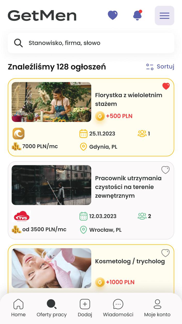 Założeniem zespołu Getmen było to, aby poruszanie się po platformie sprawiało frajdę. – Zachęcamy, aby firmy tworzyły tam swoje profile, na których będą mogły jak najpełniej przestawić się kandydatom – dodaje Rafał Paluch. – Można załadować do 40 zdjęć, pokazać swoją firmę, flotę samochodową, integracje zespołowe, miejsce pracy – niezależnie czy jest to hala produkcyjna, czy pole truskawek, a także zaprezentować miejsce zakwaterowania. Zatem pracodawcy mogą pokazać się kompleksowo i w jednym miejscu, zyskując tym samym darmową reklamę. Zresztą należy podkreślić, że publikacja ogłoszenia jest również bezpłatna. GetMen daje możliwość zapoznania się z miejscem pracy przed jej rozpoczęciem. To ważne, gdyż każdy z nas ma swoją wizję pierwszego dnia w pracy.