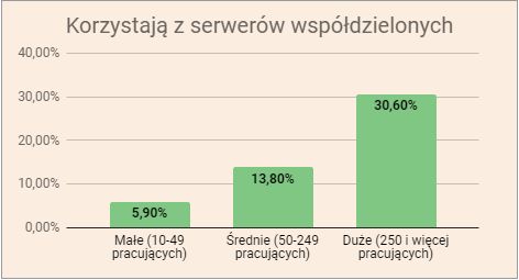 Około 30 proc. badanych dużych firm korzysta z serwerów współdzielonych. Wysyłka plików na serwer FTP w przypadku wolnego łącza może mieć istotny wpływ na jakość działania łącza internetowego dla pozostałych użytkowników.
