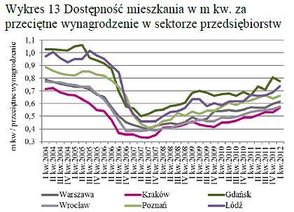 W całym raporcie doszukałem się jednak jednego optymistycznego wykresu. Od 2007 r. stale rośnie liczba metrów kwadratowych mieszkania, które można kupić za przeciętną pensję. W Gdańsku już nawet 0,8 m2 :)