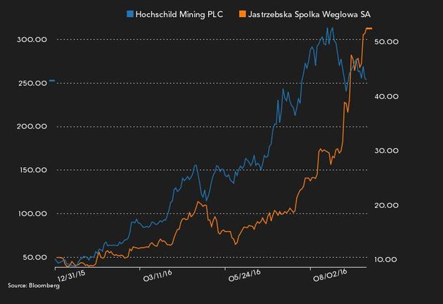 Od początku roku ceny kruszcu umocniły się o 36 proc. i są na najlepszej drodze do zamknięcia 12 miesięcy najlepszym wynikiem od 2010 r., co czego walnie przyczyniło się wstrzymywanie się przez Fed z zapowiedzianymi podwyżkami stóp procentowych. O ile w przypadku JSW niektórzy analitycy widzą w spółce jeszcze nawet 20-procentowy potencjał zwyżek, o tyle Hochschild Mining potencjał ten już najprawdopodobniej wyczerpało.