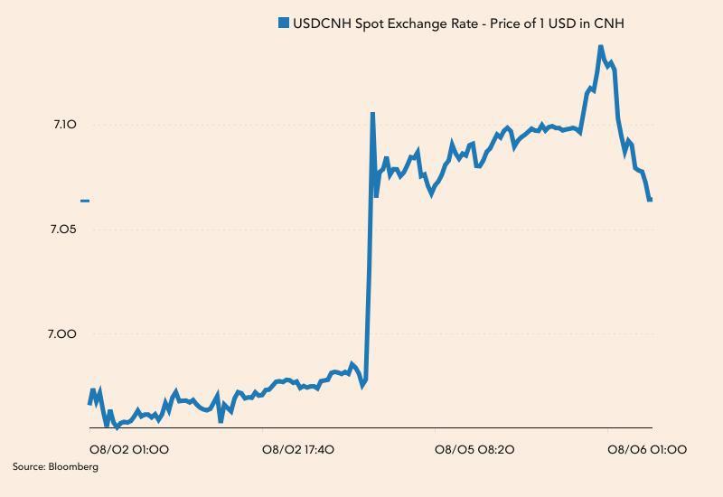 Amerykański Departament Skarbu ogłosił w poniedziałek po raz pierwszy od 1994 roku, że Chiny manipulują swoją walutą. Stało się to po tym jak wartość chińskiej waluty osłabła po raz pierwszy od 2008 roku do ponad 7 juanów za dolara. Rynki odebrały to jako odpowiedź Pekinu na zapowiedź wprowadzenia od września w USA ceł na import z Chin wartości ponad 300 mld USD.