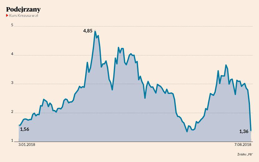 W sobotę 4 sierpnia 2018 r. okazało się, że pakiet akcji Krezusa w posiadaniu spółki Taleja skurczył się z 51 do 30 proc. Tyle że stało się to w wyniku transakcji zawieranych od 24 kwietnia do 13 czerwca, a Taleja dotychczas milczała. W poniedziałek 6 sierpnia KNF zażądała od giełdy zawieszenia notowań Krezusa, informując, że także inni zobowiązani do tego akcjonariusze firmy nie dopełnili obowiązków informacyjnych. Szybko się okazało, że chodzi o Karo- -BHZ, spółkę, której prezesem i głównym udziałowcem jest Jacek Ptaszek, prezes Krezusa. Osobiście również handlował akcjami. Transakcje jego i jego spółki odbywały się od marca do maja 2018 r. Niewielką część z nich stanowiły zakupy. W większości wyprzedawał akcje. Tylko osobiście sprzedał papiery za 3,8 mln zł.