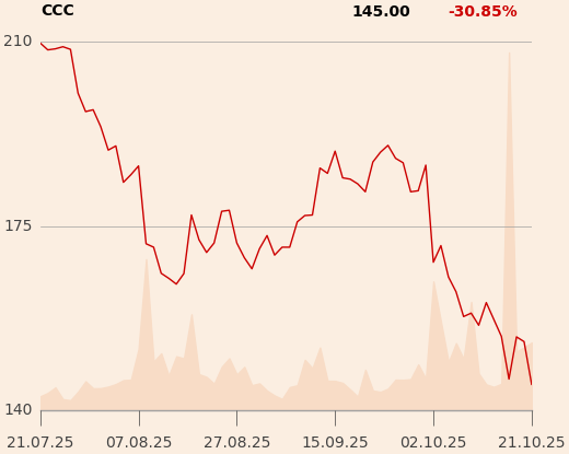 Około 10 listopada CCC powinno przedstawić wstępne wyniki za III kwartał (okres od sierpnia do października, który obejmował m.in. okres powrotu do szkół). Niektórzy analitycy już przedstawili swoje prognozy. Spodziewają się od 3,01 do do 3,16 mld zł przychodów, 491-563 mln zł EBITDA i 197-216 mln zł zysku netto. W analogicznym okresie 2024 r. przychody wyniosły 2,77 mld zł, EBITDA 474 mln zł, a skorygowany zysk netto 142 mln zł.