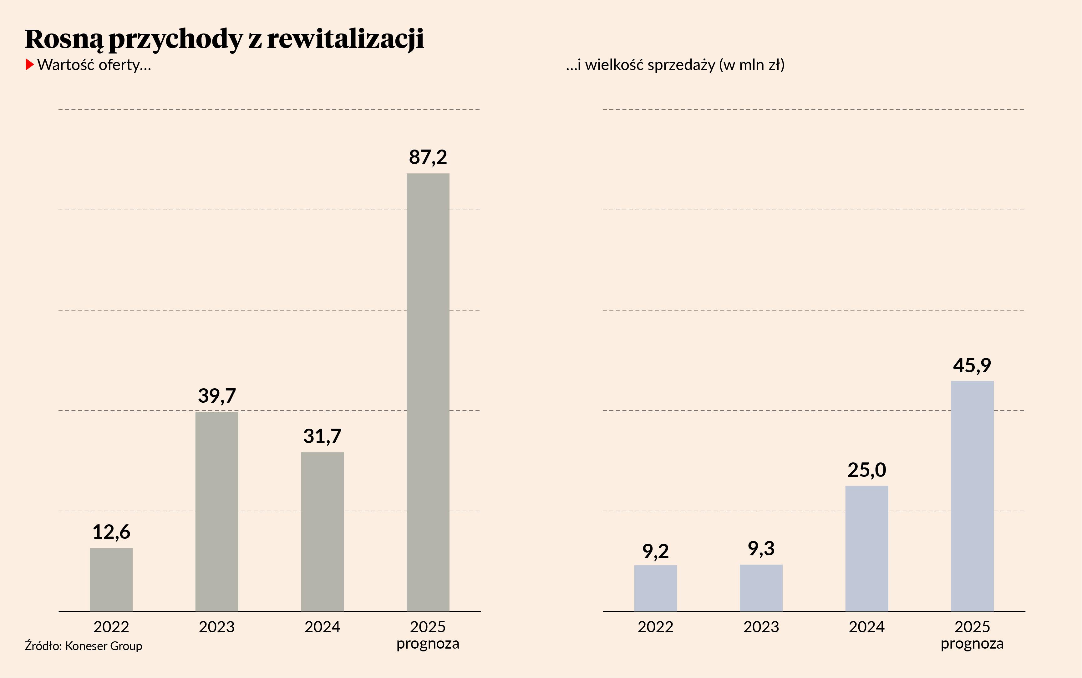 – Gdy inwestujemy w kamienicę, to w zasadzie automatycznie mieszkania z tego budynku traktujemy jako dostępne w ofercie. Nasi wierni klienci mogą dokonać jako pierwsi zakupu z dużym dyskontem. Aktualnie spółka jest po dużym zakupie, który został zrealizowany w połowie roku 2024 r. i z tego wynika taki przyrost oferty i przyrost przewidywanej wartości sprzedaży w tym roku oraz plan na 2025 r. – mówi Piotr Skałoń.