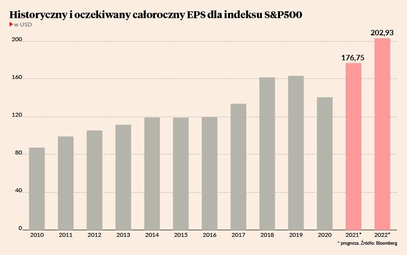 Dwa miesiące temu informowaliśmy, że zyski spółek przypadające na indeks S&P500 (czyli EPS) w drugim kwartale wzrosły o blisko 90 proc. Był to na Wall Street najlepszy sezon wynikowy od lat. Skala poprawy kompletnie zaskoczyła analityków, którzy spodziewali się wzrostu EPS-u „tylko” o 62 proc. Amerykańskie korporacje gremialnie zaskakiwały ekspertów – prawie 90 proc. z nich przekroczyło rynkowy konsensus. Co więcej, był to czas, gdy analitycy masowo podnosili szacunki korporacyjnych zysków na kolejne kwartały. Zresztą kapitalny drugi kwartał nastąpił po fenomenalnym kwartale pierwszym, kiedy to zyski przypadające na S&P500 urosły o 47 proc. i przekroczyły poziom sprzed koronakryzysu.