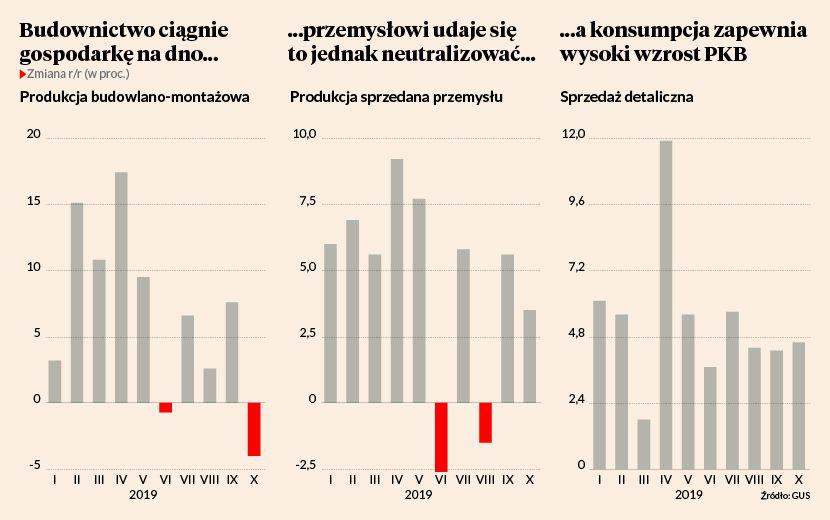 — Dane nie pokazują pozytywnego wpływu wypłaty 13. emerytury oraz rozszerzenia świadczenia 500+ na dynamikę sprzedaży detalicznej. Potwierdza to nasze przypuszczenia, że impuls fiskalny w znaczącej części jest kierowany na konsumpcję w jednostkach mikro lub konsumpcję usług [budowlanych, edukacyjnych — red.], która nie jest ujęta w miesięcznych danych publikowanych przez GUS [uwzględniających jedynie sprzedaż detaliczną w jednostkach zatrudniających powyżej 9 osób — red.]. Sugerowałoby to, że prawdziwy skutek impulsu fiskalnego będzie widoczny dopiero po corocznym badaniu mikroprzedsiębiorstw w 2020 r. — twierdzi Urszula Kryńska, ekonomistka PKO BP.