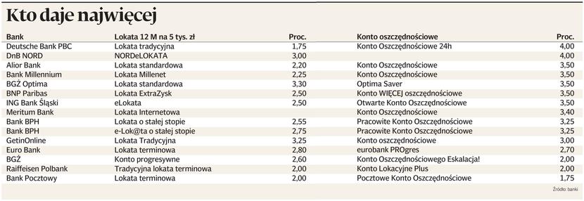 Zdecydowanie najatrakcyjniejsze warunki pod kątem oprocentowania mają Deutsche Bank PBC i DnB NORD. W obu bankach można liczyć na 4 proc. zysku w skali roku.