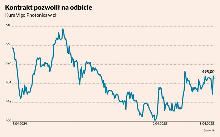 W reakcji na te informacje na poniedziałkowej sesji kurs akcji Vigo Photonics wzrósł o ponad 8 proc. Ostatnie rekomendacje analityków wyceniały akcje tej spółki od 419 do 664 zł, co sugeruje, że być może istnieje jeszcze potencjał do wzrostu. Obecnie kurs jest w okolicach 500 zł.