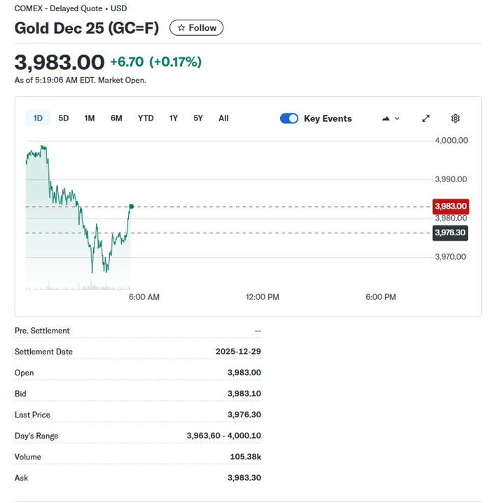 Podczas wtorkowych notowań grudniowe futures na złoto doszły do poziomu 4000,1 USD za uncję. To pierwszy raz w historii, że przebiły psychologiczny poziom. Następnie powróciły w okolice 3983 USD/u.