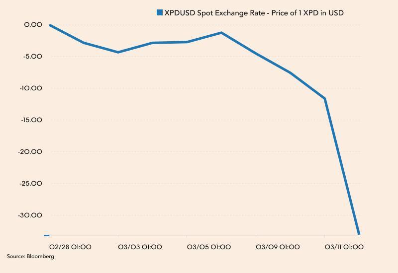 Notowania palladu załamały się, a spadek kursu metalu o ponad 20 proc. od szczytu zanotowanego pod koniec lutego oznacza techniczny rynek niedźwiedzia. Notowaniom metalu stosowanego w katalizatorach nie sprzyjają pogarszające się perspektywy branży motoryzacyjnej. Producenci samochodów borykali się z problemami jeszcze przed epidemią koronawirusa, która jeszcze mocniej pogorszyła ich sytuację. Dodatkowym ciosem dla notowań palladu jest wyraźne umocnienie dolara amerykańskiego, którego indeks rośnie w czwartek aż o 1,4 proc.