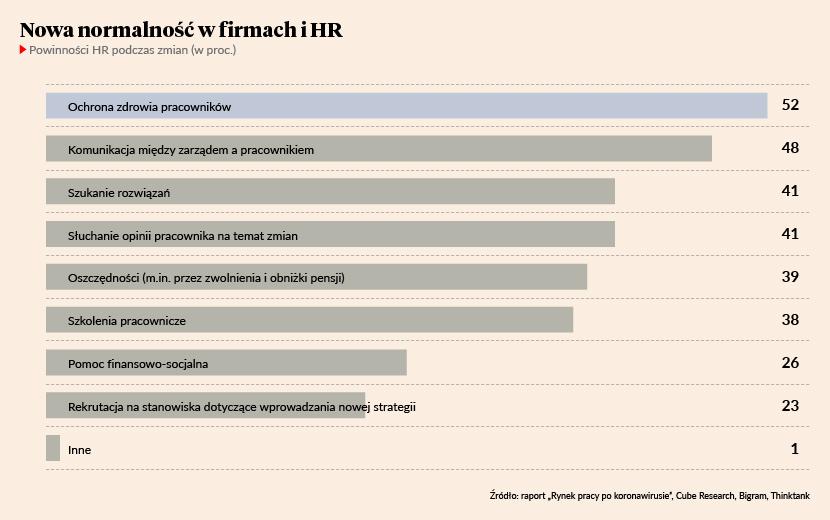 Co zmieniło się od marca w firmach, działach HR, relacjach między pracownikami i menedżerami oraz w zespołach? Które z tych zmian są trwałe, a które znikną kiedyś bez śladu wraz z koronawirusem? Jak przeprowadzić przedsiębiorstwa przez kryzys, nie niszcząc zaufania pracowników? Odpowiedzi na takie pytania przynosi raport „Rynek pracy po koronawirusie”, będący wynikiem badań wykonanych przez agencję badawczą Cube Research na zlecenie firmy Bigram (doradztwo personalne, rekrutacja) i Thinktank (platforma komunikacji dla biznesu, administracji publicznej, polityków i samorządowców).