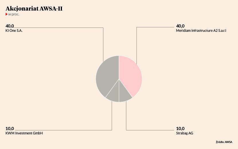 Komisja Europejska opublikowała niedawno notkę, z której wynika, że otrzymała zgłoszenie koncentracji w trybie art. 4 Council Regulation No 139/2004, czyli unijnych przepisów dotyczących fuzji i przejęć. Zgodnie z nim Meridiam SAS zamierza pośrednio nabyć 100 proc. udziałów w firmie KI One, do której należy 23,8 proc. akcji AWSA i 40 proc. AWSA II. Obecny udział Meridiama w tych spółkach to odpowiednio: 26,3 i 40 proc. Oprócz AWSA i AWSA II fundusze z francuskiej grupy kupią akcje spółki Autostrada Eksploatacja, odpowiadającej za utrzymanie trasy A2, oraz budowlanej A2 Route.