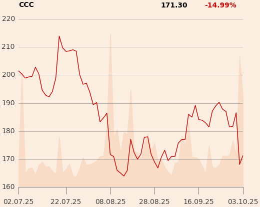 CCC wstępne wyniki za II kwartał (okres od maja do lipca) przedstawiło już 7 sierpnia. Wynik EBITDA zarząd oszacował wówczas na 481 mln zł. Pierwsza reakcja inwestorów była pozytywna (kurs na początku sesji 8 sierpnia rósł nawet o 3 proc.), ale później szybko zszedł pod kreskę i spadał nawet o 11 proc.