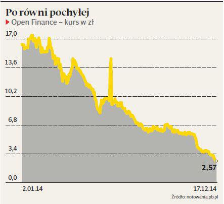 ondycja spółki oddaje generalnie mizerię, jaka panuje w całej branży, czego najdobitniejszym symbolem jest znikanie kolejnych firm z rynku, jak A-Z Finanse czy Goldenegg (najpierw pierwsza wchłonęła drugą, później A-Z Finanse zostały przejęte przez Money Expert — ten podmiot w końcu zbankrutował). Na tle pozostałych reprezentantów sektora Open Finance jest niekwestionowanym liderem. Według danych Związku Firm Doradztwa Finansowego w III kw. 2014 r. na spółki z grupy przypadło 39 proc. rynku sprzedanych kredytów — zarówno hipotecznych, jak i gotówkowych, a w segmencie produktów inwestycyjnych doradcy z Open Finance oddali konkurencji niewiele ponad 5 proc. rynku. Zdaniem analityków, problemów pośrednikowi nastręczył głównie Getin Noble Bank, zmniejszające prowizje, wypłacane doradcom. Obecnie są one równe stawkom, oferowanym konkurentom, co w świetle słabszych wyników finansowych spółki i coraz bardziej kulejącego rynku hipotecznego nie jest dobrym prognostykiem.