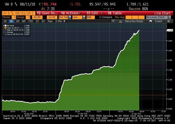 Oprócz akcji spółki tanieją także obligacje Volkswagena. Rentowność np. obligacji Volkswagen Leasing z terminem wykupu w 2020 roku wzrosła do 1,7 proc. kiedy jeszcze w piątek wynosiła 0,7 proc.