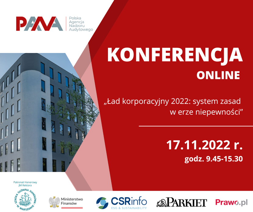 Nie. Adresujemy ją do wszystkich zainteresowanych gospodarką i edukacją finansową. Będziemy poruszać tematy ważne z punktu widzenia inwestorów (w tym omówimy kwestię ładu korporacyjnego w mniejszych firmach - poza rynkiem podstawowym GPW), menedżerów, pracowników przedsiębiorstw, wszelkich sygnalistów, instytucji państwowych oraz instytucji finansowych. Udział w konferencji jest bezpłatny, a więcej informacji oraz formularz rejestracji znajduje się na naszej stronie internetowej (pana.gov.pl). Ład korporacyjny to wszechstronne zagadnienie, na które ma wpływ wiele czynników oraz interesariuszy.