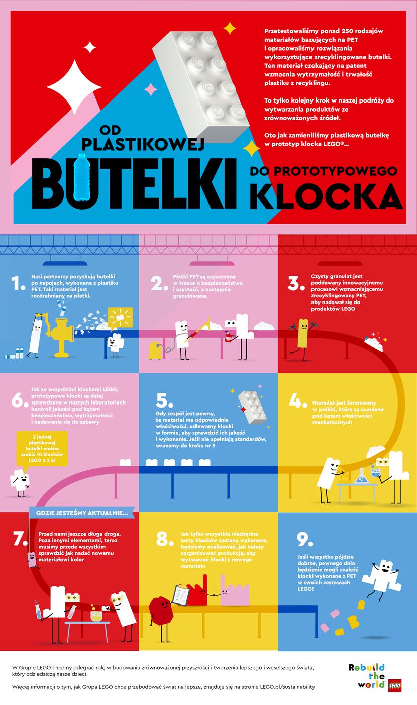 Początkowo Lego ma korzystać z butelek po napojach bezalkoholowych pochodzących ze Stanów Zjednoczonych. Wyklucza natomiast odzyskiwanie plastiku z oceanów twierdząc, że jest on za bardzo zdegradowany.