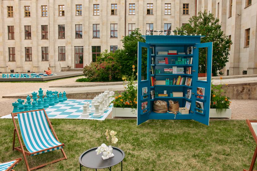 Letnia strefa Rituals w Cafe Podrygi to wakacyjna przestrzeń pozytywnych wibracji w sercu Warszawy. Miejsce, którego atmosfera zachęca do relaksu i złapania chwili oddechu. W upalne dni można skosztować lodów, lemoniady i letnich deserów ze specjalnej karty Rituals. Letnie popołudnia można spędzić przy lekturze książki wypożyczonej z miejskiej biblioteczki lub skorzystać z dostępnych bezpłatnych atrakcji – do dyspozycji gości Cafe Podrygi są także ogrodowe szachy, tenis plażowy, boule czy gry karciane.