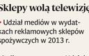 Mniejsi muszą się bardziej starać. Na polskim rynku handlowym pod względem wartości i powierzchni sprzedaży niekwestionowanym liderem jest Biedronka, należąca do portugalskiego Jeronimo Martins, której przychody przekraczają już 32 mld zł rocznie. To jednak nie ona, ale ścigający ją Lidl z niemieckiej grupy Schwarz (którego obroty w 2013 r. przekroczyły 10 mld zł) kolejny rok z rzędu jest liderem branży pod względem nakładów reklamowych. Wszystkie sklepy wielkopowierzchniowe — dyskonty, supermarkety i hipermarkety — cennikowo wydały na reklamy w ubiegłym roku 1,126 mld zł, o 31 proc. więcej niż rok wcześniej. Nawet bez uwzględnienia internetu nakłady sklepów rosną nieprzerwanie od ośmiu kwartałów. Takie są wyniki analizy reklamowych poczynań sieci spożywczych, przygotowanej przez dom mediowy Equinox Polska na podstawie danych Kantar Media.
