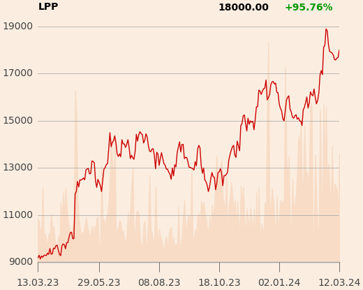 W ubiegłym roku cena akcji LPP wzrosła o mniej więcej połowę do ok. 16 tys. zł, a w tym podskoczyła do ok. 18 tys. zł, co daje ok. 33 mld zł kapitalizacji. Pod tym względem w giełdowej branży firma nie ma sobie równych – Pepco wyceniane jest na 10,6 mld zł, a CCC na 4,8 mld zł. W WIG20 jest spółką prywatną o największym udziale w portfelu - więcej ważą tylko czempioni z udziałem skarbu państwa w akcjonariacie (PKO BP, Orlen, Pekao i PZU).