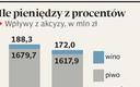 Budżetowych oczekiwań nie spełniło nawet wino, choć jego producenci są przekonani, że rynek powoli, ale cały czas rośnie. W tym roku dołożyli do budżetu 172 mln zł, wobec 188,3 mln zł rok wcześniej.