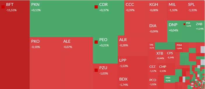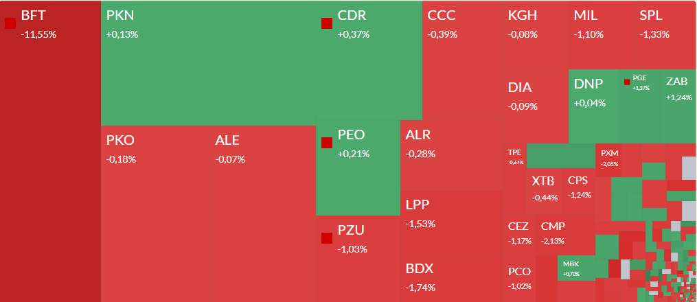 W środę po sesji główny akcjonariusz Benefitu Systems poinformował o zamiarze sprzedaży akcji w procesie przyspieszonej budowy księgi popytu (ABB). Ostatecznie zdecydował się na upłynnienie całego posiadanego pakietu 13,85 proc. walorów po cenie jednostkowej 3 tys. zł. To o 14,5 proc. mniej od kursu zamknięcia poprzedniej sesji, więc spora przecena na dzisiejszej nie jest niespodzianką.