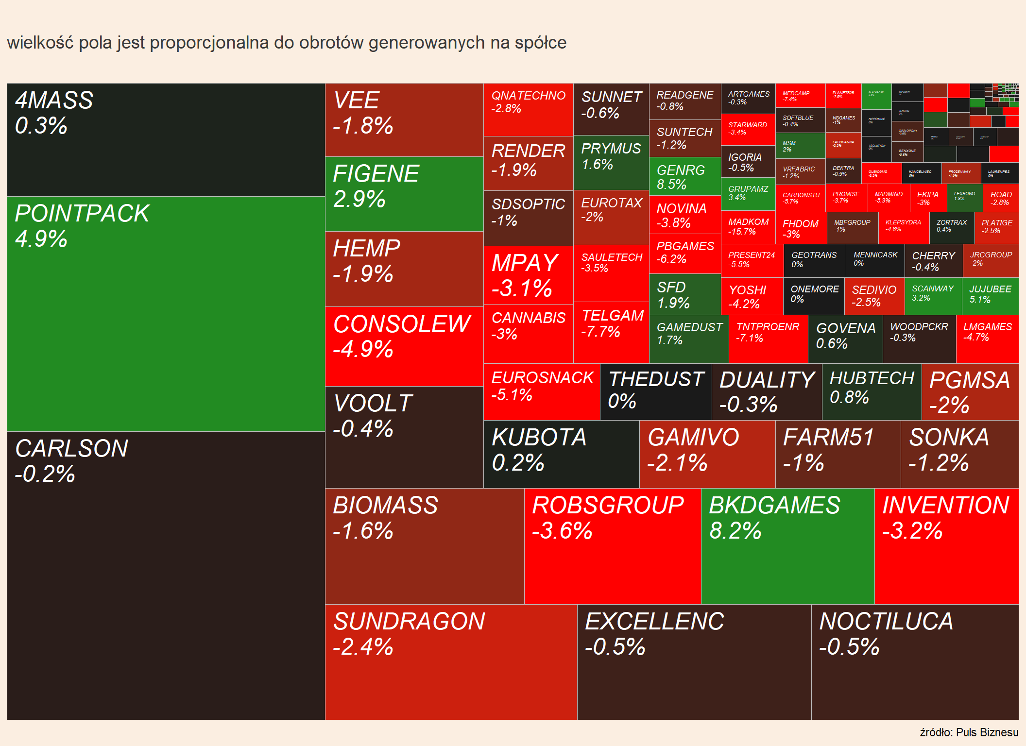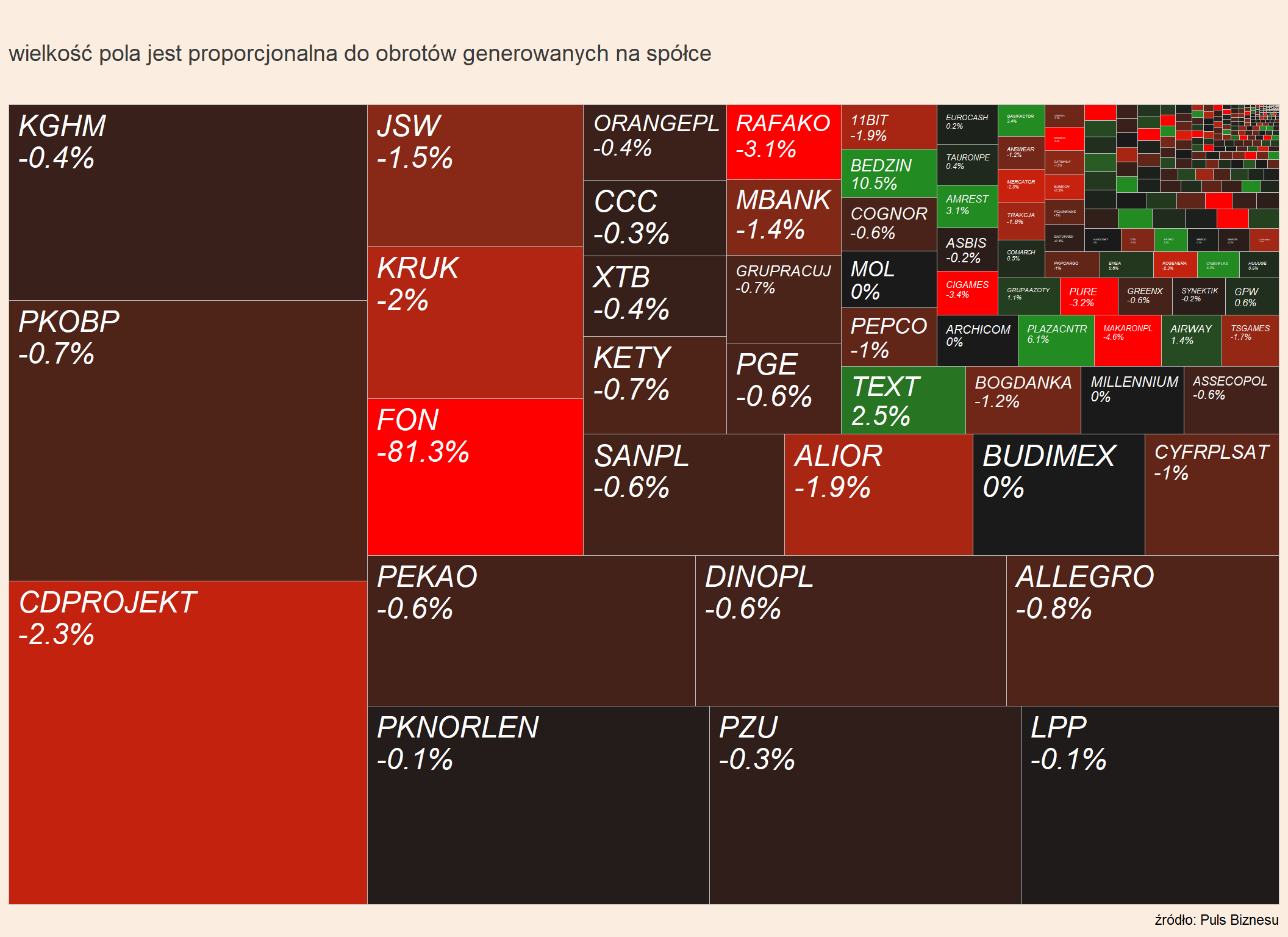 Wśród blue chipów słabością wyróżnia się CD Projekt, gdzie entuzjazmu i kapitału po podaniu informacji o warunkach wynikowych programu motywacyjnego nie starczyło na wiele.