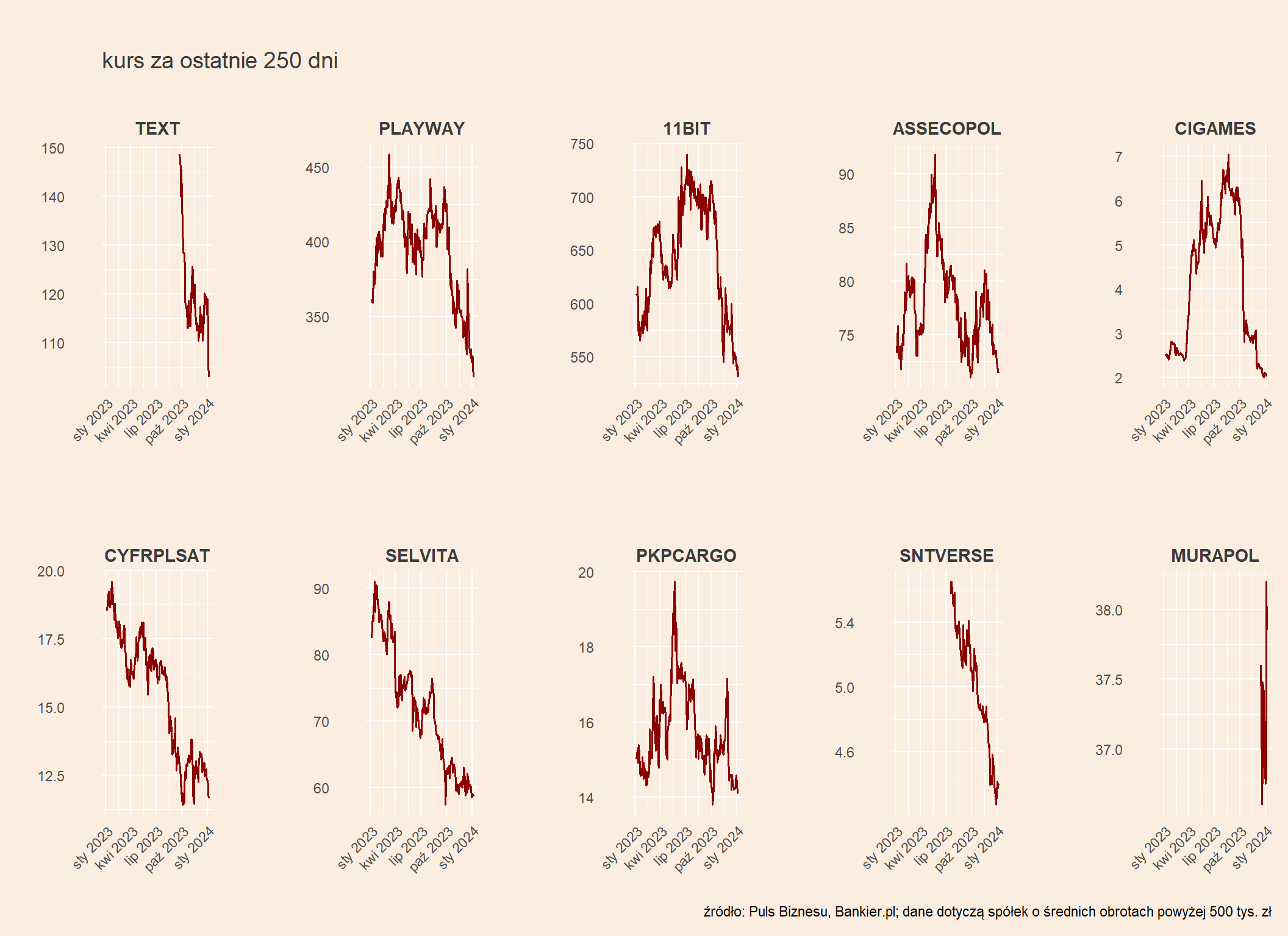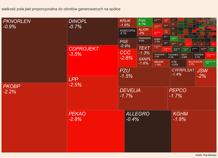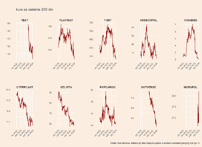 Bardziej od rynku spada kurs CD Projektu, mimo że spółka pochwaliła się sprzedażą dodatku “Phantom Liberty” przekraczającą 5 mln sztuk w 2023 r. (powyżej oczekiwań analityków). Z takiego obrotu sprawy cieszą się fundusze grające na spadek notowań - w rejestrze KNF powyżej progu 0,5 proc. widnieją trzy.