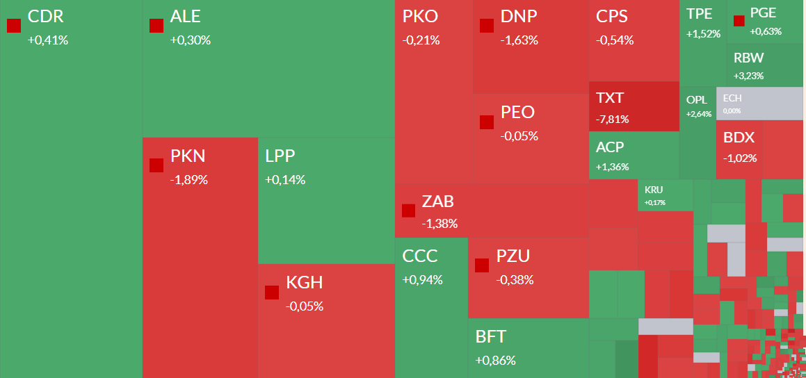 Dobry dzień mają za to akcjonariusze Rainbow Tours. Kurs odbił po publikacji lepszych od oczekiwań wyników za III kwartał. Zysk netto wyniósł 160 mln zł, o 12,8 proc. więcej od konsensu prognoz.
