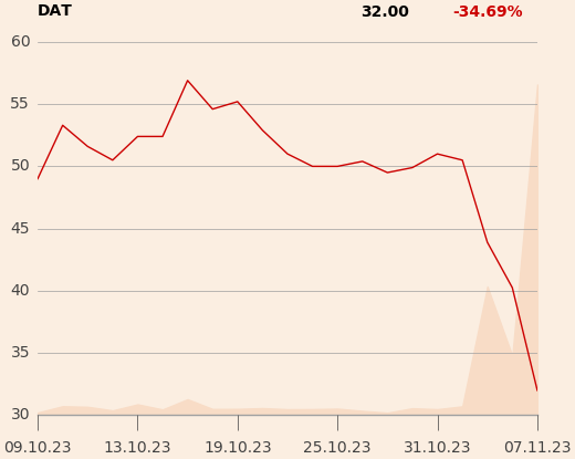 O kilkanaście procent spadają notowania DataWalk, które od publikacji rozczarowujących, wstępnych wyników za III kwartał potaniały już o jedną trzecią. Kapitalizacja firmy, która ma problem ze zwiększeniem skali działalności i osiągnięciem rentowności (a za chwilę być może konieczna będzie kolejna emisja akcji), wynosi 175 mln zł.