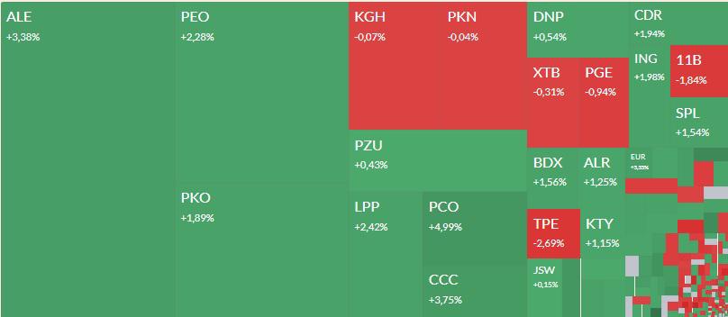 Mapa GPW: Drago, Ailleron, Pepco, Allegro i CI Games w centrum uwagi