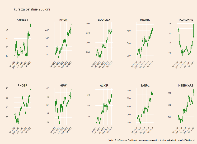 Warto zwrócić uwagę na kontynuację dobrej passy AmRestu - spółka jest w gronie tych, których kursy poprawiają roczny szczyt.