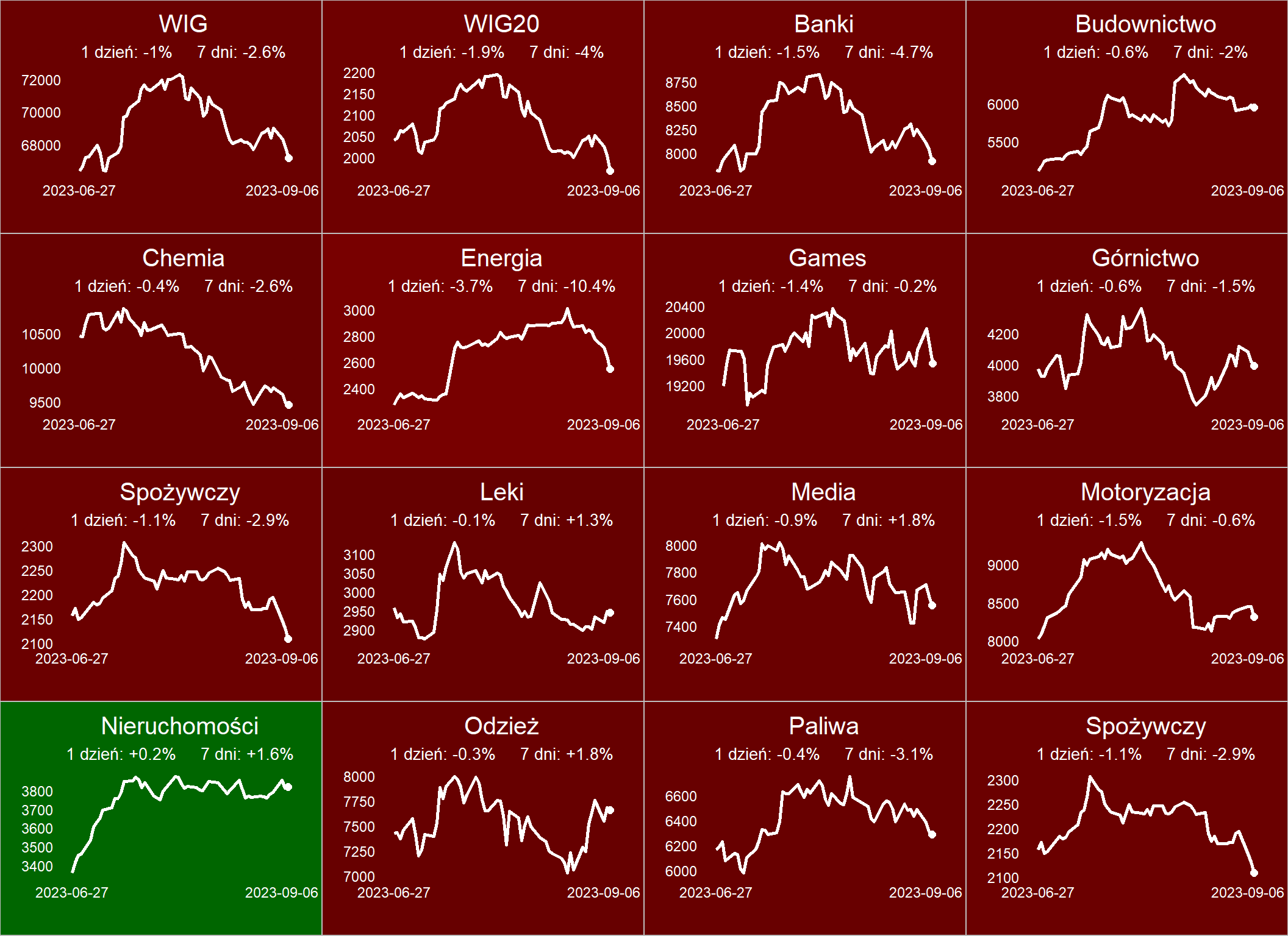 Po słabym sierpniu wrzesień też nie układa się po myśli inwestujących na GPW. WIG20 spadł poniżej 2000 pkt, głównie za sprawą sektora energetycznego, ale słabością od dłuższego czasu razi też inny istotny element giełdowej układanki - banki. W tydzień indeks tego sektora spadł niemal o 5 proc. Energetyka straciła ponad 10 proc., bo przyspieszenie w pracach nad NABE dopiero tuż przed wyborami skończyło się jak się skończyło. Jacek Sasin, minister aktywów państwowych, winę zrzuca na Marszałka Senatu.