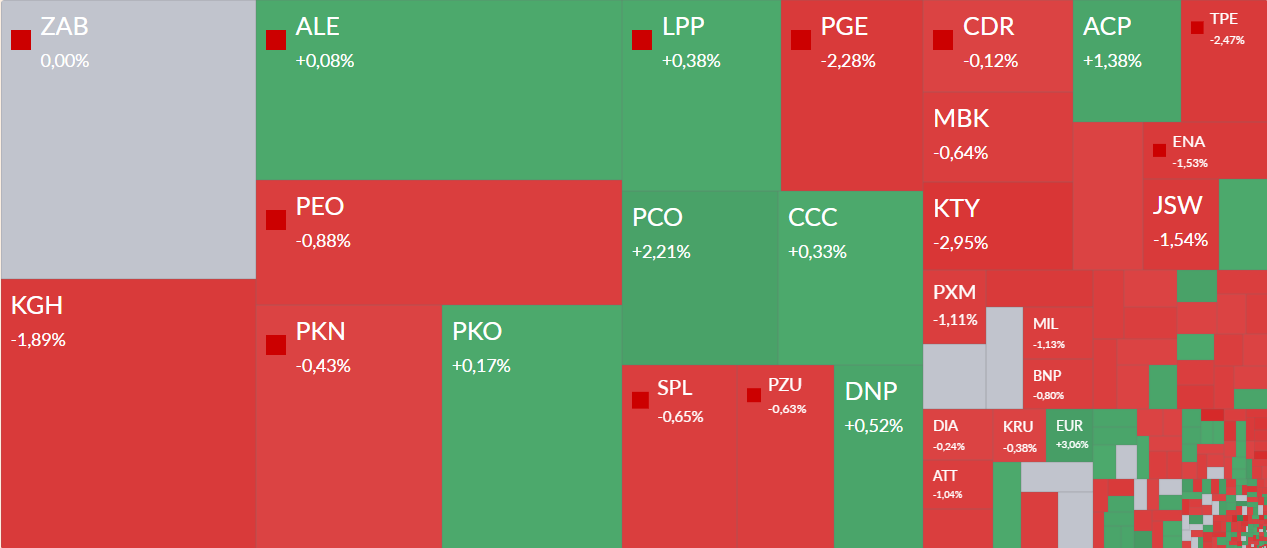 Wczorajszy zjazd w końcówce sesji częściowo odrabia Pepco. Wcześniej właściciel sieci sklepów z odzieżą i zabawkami przedstawił wyniki i prognozy. Zarząd zadeklarował też podniesienie dywidendy.
