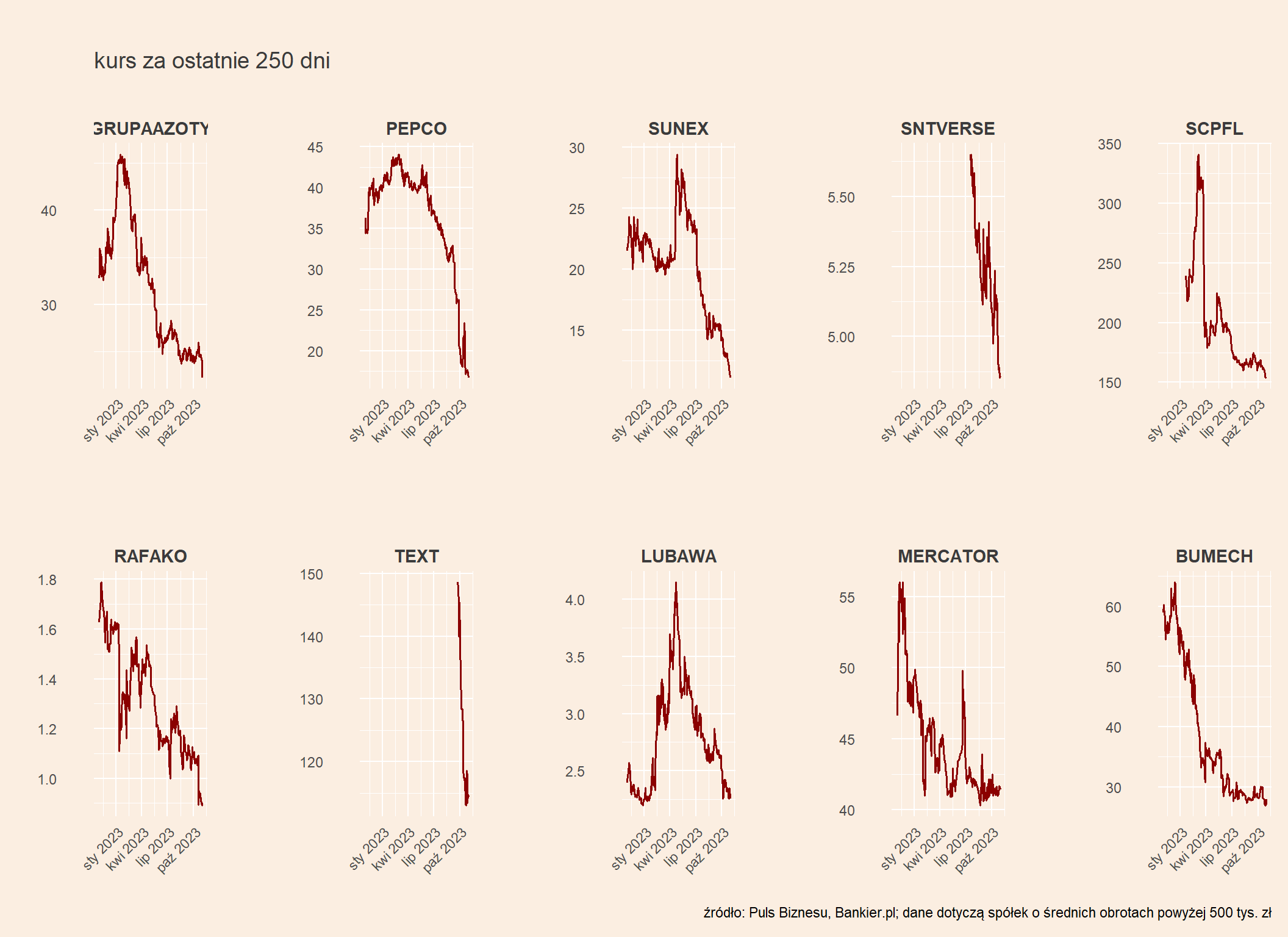 Mocno spada kurs Grupy Azoty, która podała w ubiegłym tygodniu słabe wyniki za III kwartał (wstępne), w weekend informację o wystąpieniu przez spółkę zależną Polyolefins z wnioskiem o pożyczkę w wysokości do 105 mln EUR, a jakby tego było mało, negatywną rekomendację wystawił akcjom analityk DM BOŚ.