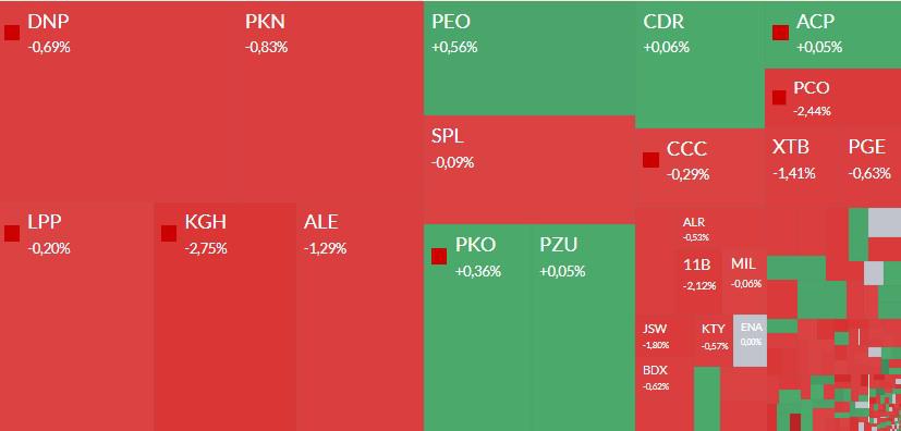 Niewiele lepiej radzi sobie Pepco, którego kurs zmierza do rocznego dołka. Już wczoraj notowania wyraźnie spadły po publikacji przez GUS rozczarowujących danych o sprzedaży detalicznej.