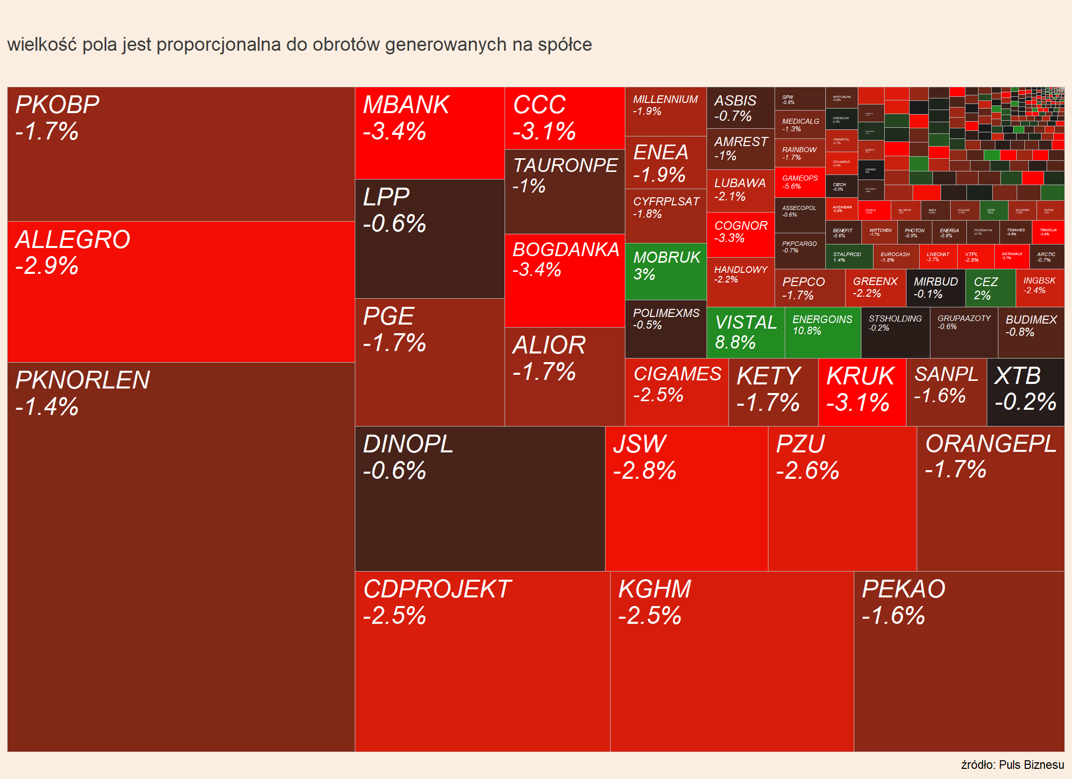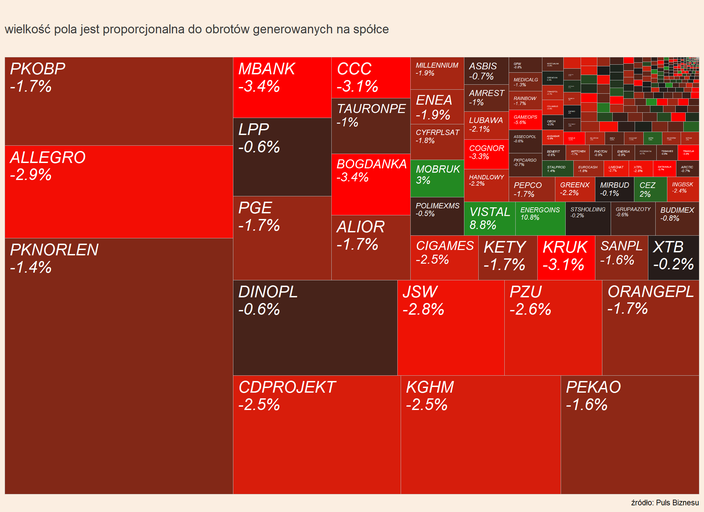 W WIG20 skalą spadku wyróżniają się: