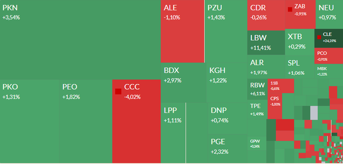 Rośnie kurs Bumechu, czyli pogrążonego w kłopotach producenta węgla (spółka zajmuje się też usługami dla branży). Inwestorzy mogą spekulować pod poluzowanie polityki klimatycznej w Europie - agencja Bloomberg zwraca uwagę, że tematy klimatyczne niemal całkowicie zniknęły z debaty politycznej za zachodnią granicą, co było widoczne podczas niedzielnej telewizyjnej dyskusji kandydatów na kanclerza.
