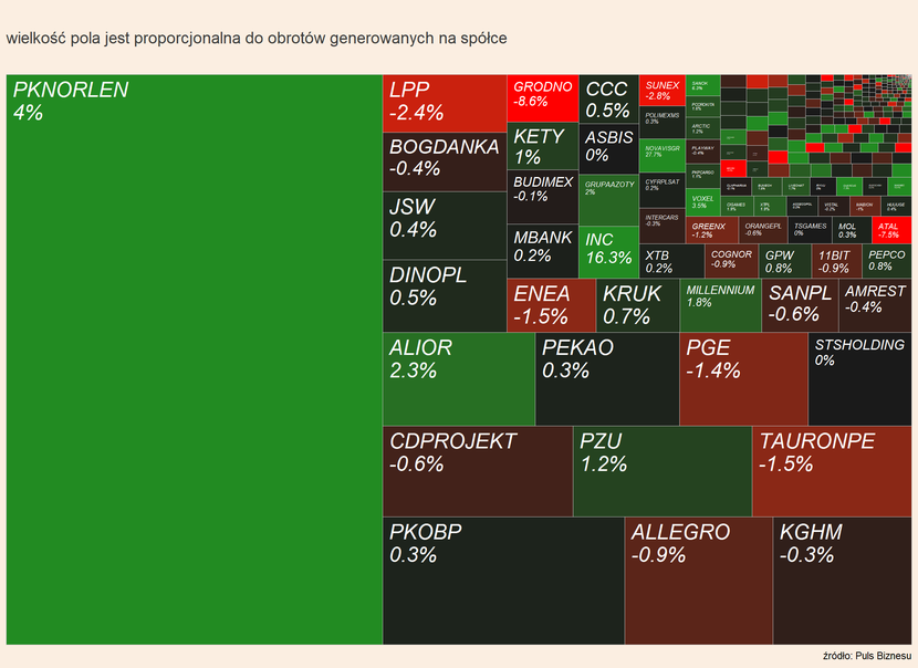 Walory koncernu zajmują sporą część mapy rynku, bo zwyżce notowań towarzyszą ponadprzeciętne obroty.