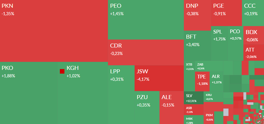 Tym razem największym hamulcowym jest Orlen, którego akcje tanieją o około 1,5 proc.