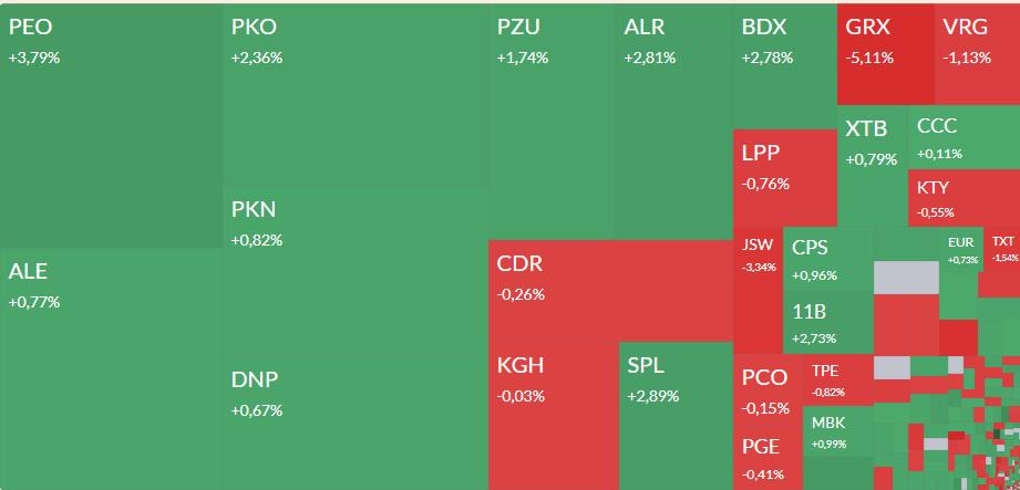 O ponad 3,,5 proc. drożeją akcje Banku Pekao, a solidne zwyżki dotyczą też akcji PKO BP, Aliora i Santander Banku Polska. WIG-Bank po korekcie, która zbiegła się z ofertą publiczną Żabki (dziś kończą się zapisy w transzy drobnych inwestorów i book building wśród instytucji) idzie więc wyraźnie w górę.