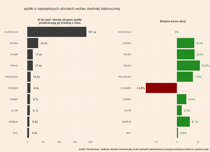 Wśród drożejących spółek (czemu towarzyszą ponadprzeciętne obroty) jest Agora. Inwestorzy mogą grać pod odkręcenie kurka z pieniędzmi reklamowymi ze spółek skarbu państwa, finansujących do tej pory media prawicowe.