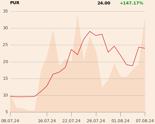 Kurs Pure Biologics, spółki, która była na GPW numerem 1 w lipcu pod wzgledem stopy zwrotu, bo dynamicznej korekcie znów idzie w górę. Wczoraj zwyżkował niemal o 30 proc., dziś rośnie o około 15 proc.