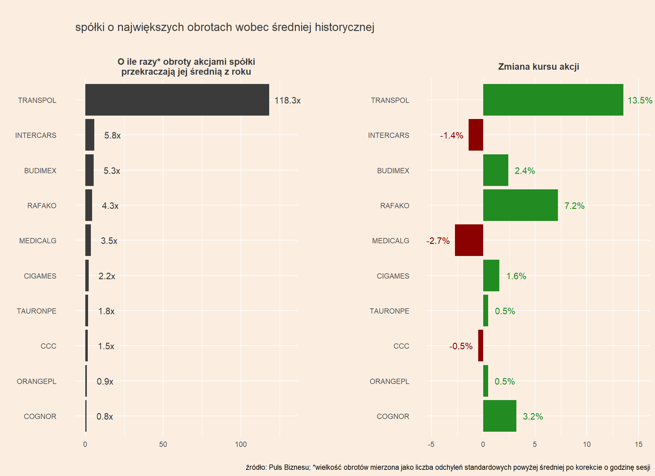 W poniedziałek kurs Trans Polonii wystrzelił po powrocie akcji do obrotu na GPW po trzymiesięcznej banicji (wynikała ona z nieopublikowania w terminie raportu rocznego). Mocnym impulsem było też uchwalenie w ostatnich dniach sutej dywidendy.