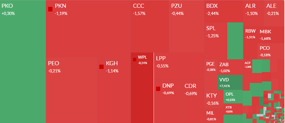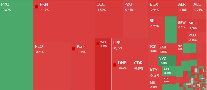 O 10 proc. spadają notowania Wirtualnej Polski. Inwestorpm nie spodobały się wyniki za II kwartał. Przychody po uwzględnieniu przejęć (pro forma) wzrosły o 5 proc. r/r do 591,3 mln zl, a skorygownana EBITDA spadła o 2 proc. do 132,4 mln zł. Strata netto przypadająca na akcjonariuszy jednostki dominującej wyniosła 11,1 mln zł, w porównaniu do 16,8 mln zł zysku w II kw. 2024 r.